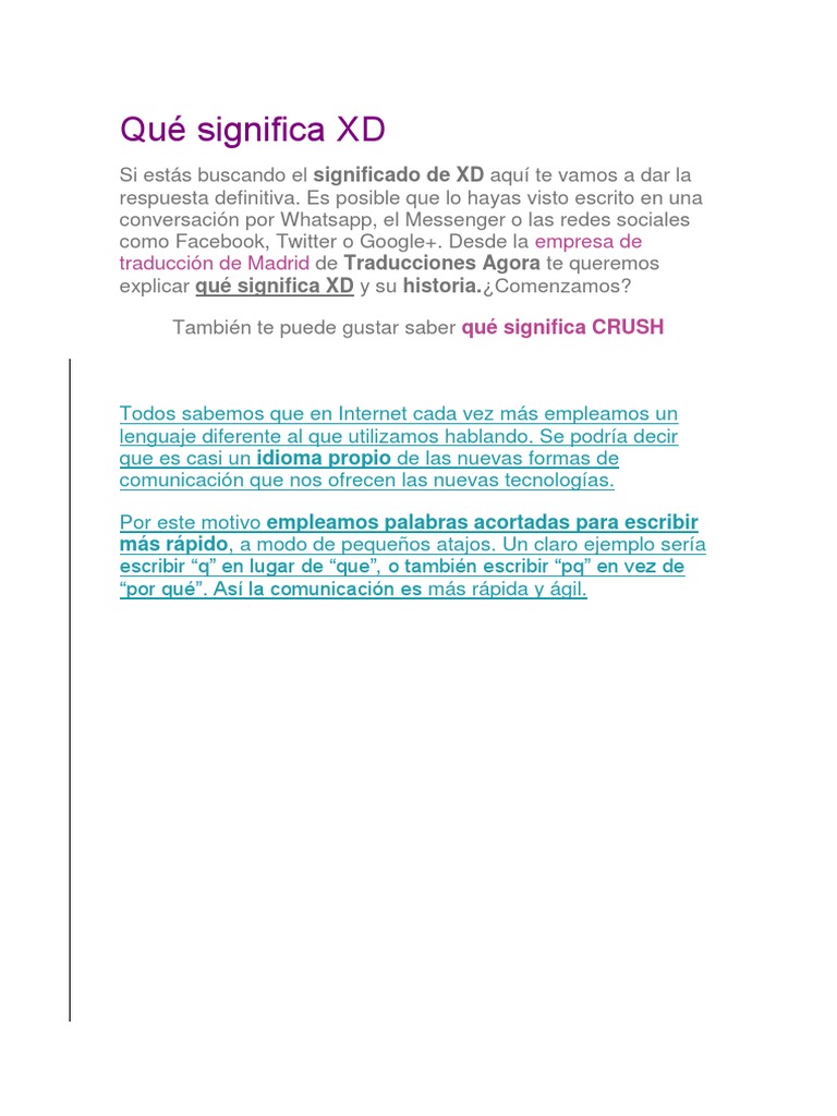 Una de las primeras cosas que me enseñaron sobre internet y el correo electrónico fué, junto a los grupos de noticias, el funcionamiento de las opciones de envío de cualquier email. El significado de xd, a lo que el padre responde, con aparente seguridad, que significa por dios. Lanzamiento de una nueva película, serie o noticia. (2 * q, dos quetzales dijeron por alla arriba! 6.4 ¿qué significan los emojis?